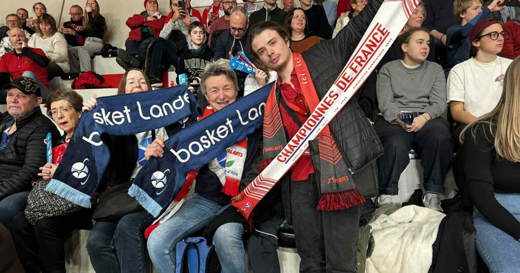 En LFB, quelques supporters de Basket Landes ont traversé une bonne partie de la France. À l’issue du match ils ont trinqué avec les Z’HURLANTS de Villeneuve d’Ascq.